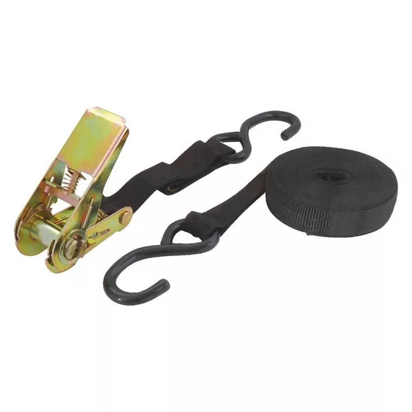– Sangle en 2 parties à cliquet séparé en polyester., avec 2 crochets « S ».